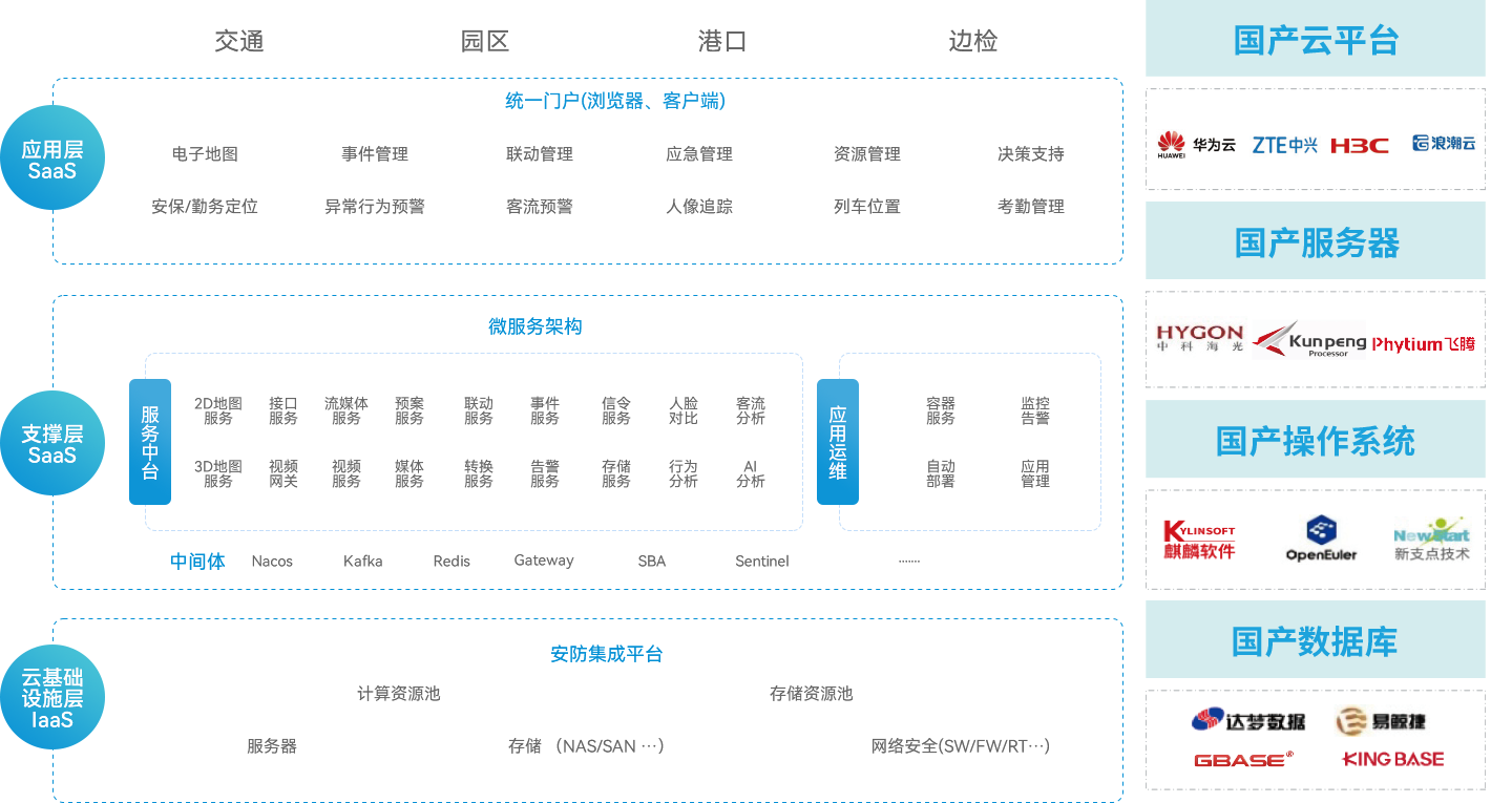 智慧安防平台是中兴系统基于新一代人工智能、大数据和物联网等技术打造的智能化安防解决方案。该平台整合视频监控、出入口控制、安全检查与探测、入侵报警、电子巡查等技术防范系统,形成一个统一的整体。平台充分考虑用户业务需求和流程特点,构建"事前预警、事中控制、事后追溯"的风险防控体系,实现安全态势智能感知、事件精准掌控、系统协同联动以及应急高效处置,从而达成一体化智能管理和安防效能全面提升的目标。 平台兼容信创软硬件产品,并符合GB/T 28181-2022、GB51151-2016、GB/T 26718-2024等国家标准。其应用范围涵盖交通、港口、医疗、园区和口岸等多个行业领域。