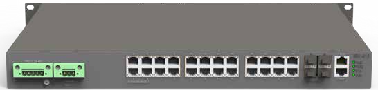 该三层管理型交换机搭载自主研发 / 国产化认证的交换芯片及处理器、国产存储芯片等器件,采用自研软件平台,源代码级可控。从硬件底层到上层软件确保无后门漏洞,所有元器件 100% 国产,国产化率达到 100%。采用无风扇设计,具有 24 个 10/100/1000 Base-T 自适应 RJ45 端口和 4 个千兆 SFP光口。每个 RJ45 端口均支持 MDI/MDIX 自动翻转和线速转发功能。支持 VLAN、QoS、GMRP、IGMPsnooping、端口镜像、RSTP/STP/MSTP、ERPS、路由等功能。